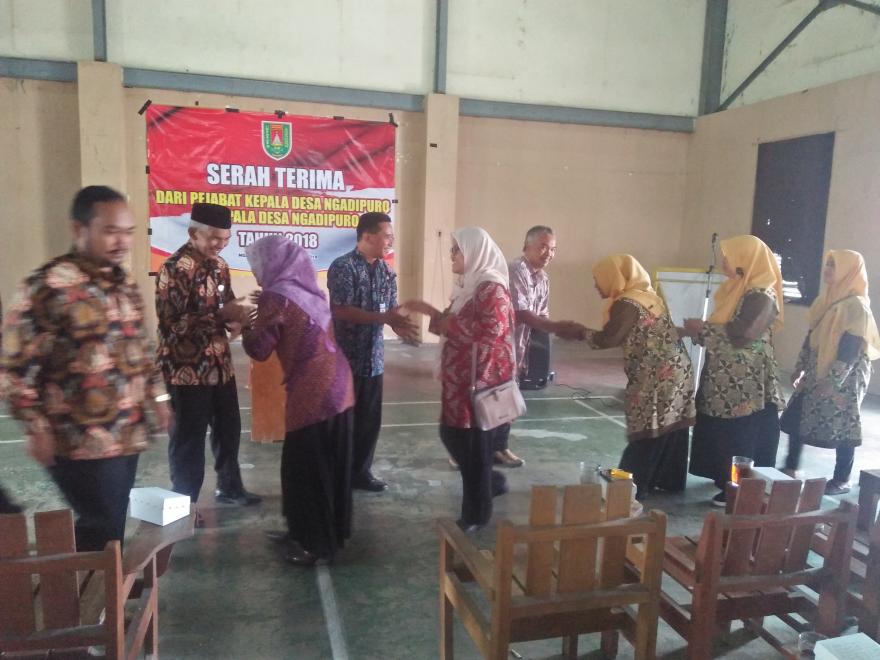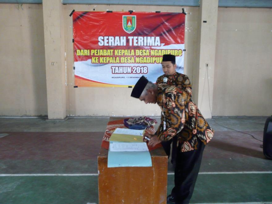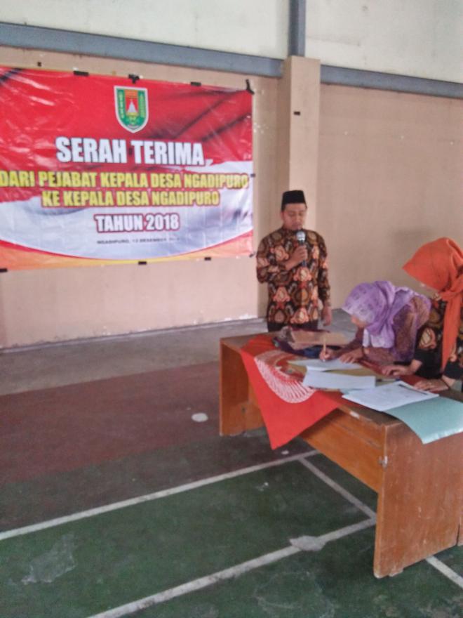Kamis 13 Desember 2018 di Gedung Serbaguna Ngadipuro secara resmi telah diadakan serah terima jabatan dari pejabat kepala desa Toha Maksum Kepada kepala Desa Terpilih Iwan Agus Purwoko. Juga Dilaksanakan Serah terima Jabatan TP PKK Desa dari Tri Retnowati Spd. Kepada Erna Hermawati sebagai ketua Team Penggerak PKK desa. dalam Pidatonya Toha menjabarkan tentang kegiatan yang telah dilaksanakan dan PR Pemdes yang masih belum terlaksana, Sedangkan Iwan dalam Pidato sambutannya setelah resmi menjabat sebagai Kepala Desa Ngadipuro mengatakan harapan dari kemajuan Desa ke depan dan ajakan kepada seluruh elemen Desa untuk bahu membahu membangun Ngadipuro yang lebih bermartabat dan lebih baik dalam usaha menjadikan Ngadipuro sebagai Desa mandiri.